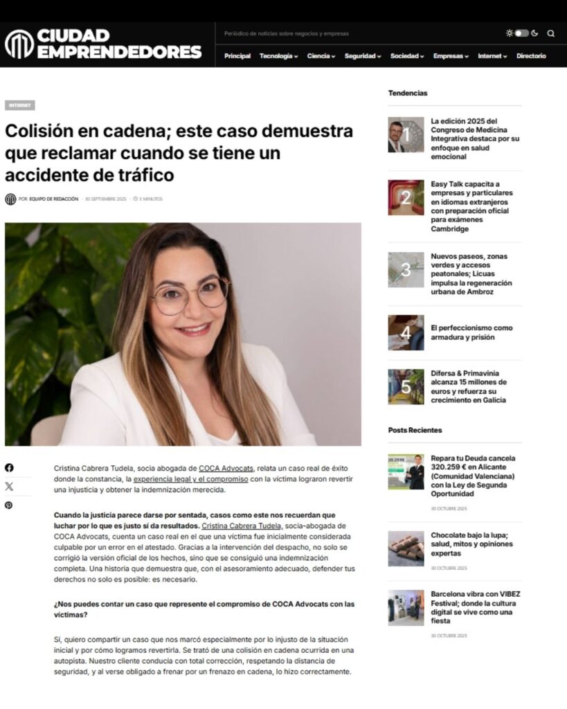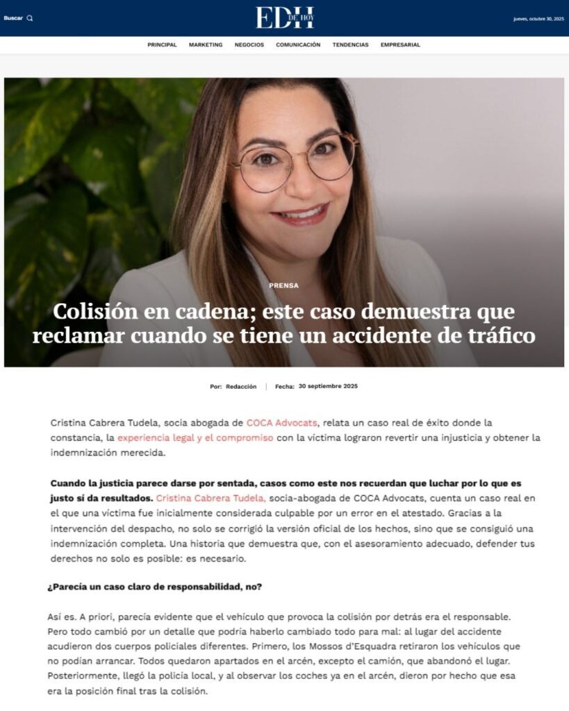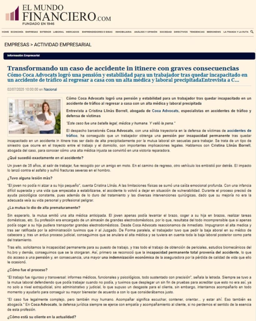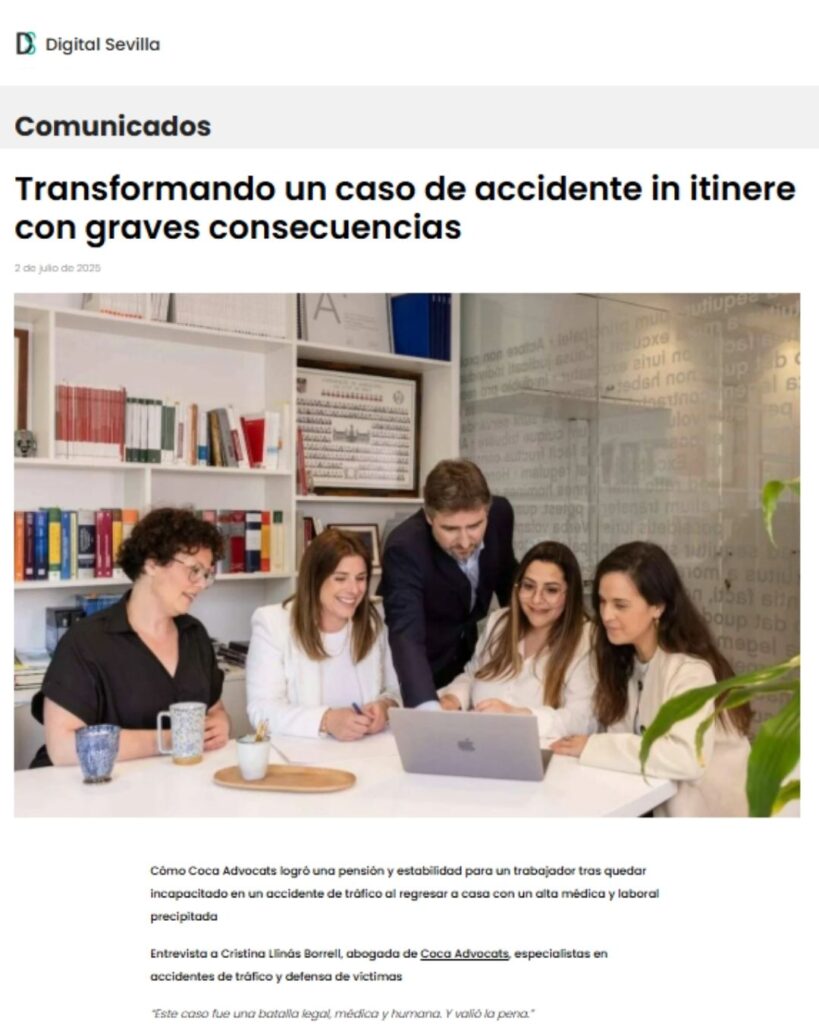 Hace unos años tuve un accidente, y necesité asesoramiento legal. Desde Coca Advocats me atendieron y acompañaron en el lento pero seguro, proceso. Recomiendo el trabajo profesional que realizan así como el acompañamiento que hacen de cada caso/persona/situación.