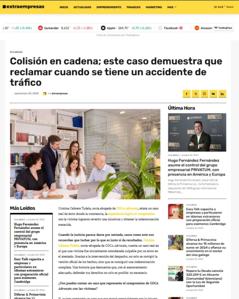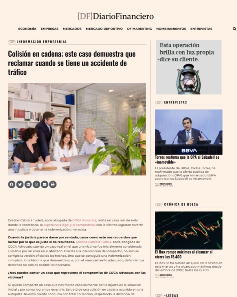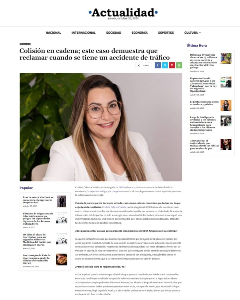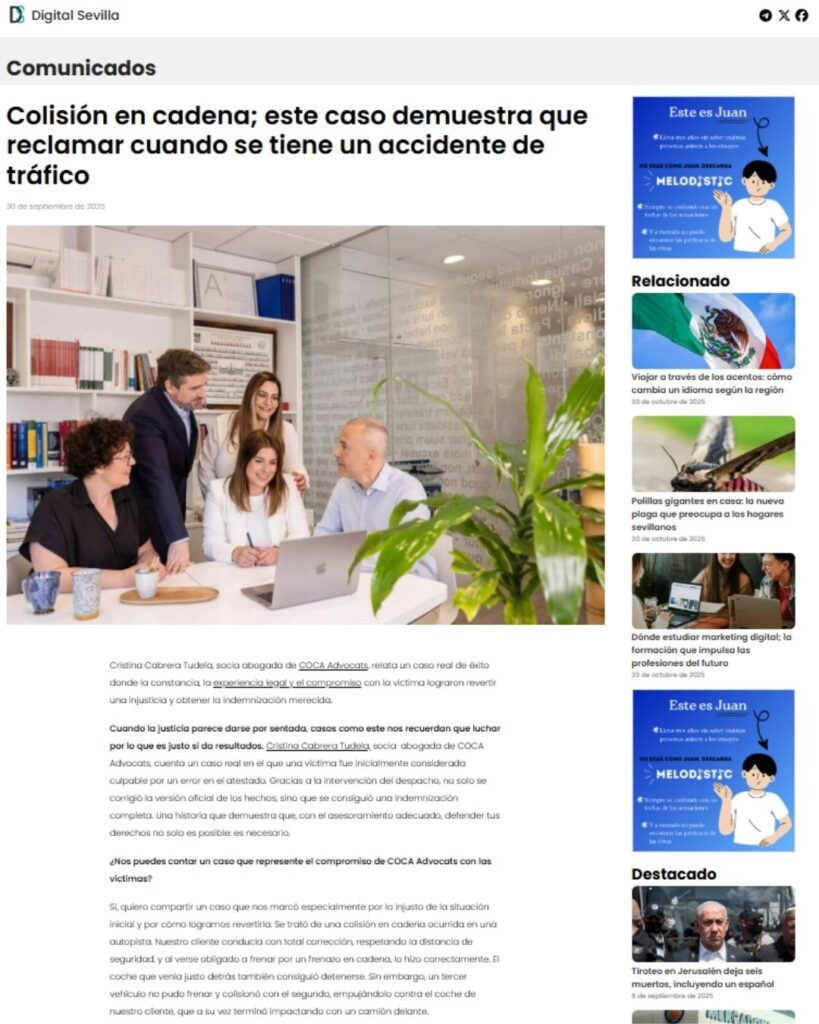 Hace unos años tuve un accidente, y necesité asesoramiento legal. Desde Coca Advocats me atendieron y acompañaron en el lento pero seguro, proceso. Recomiendo el trabajo profesional que realizan así como el acompañamiento que hacen de cada caso/persona/situación.